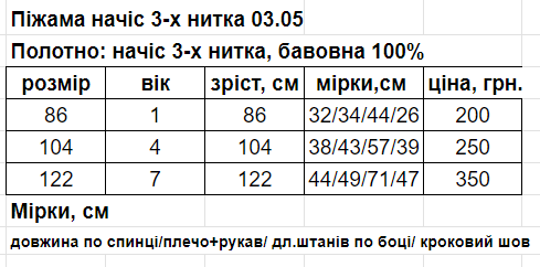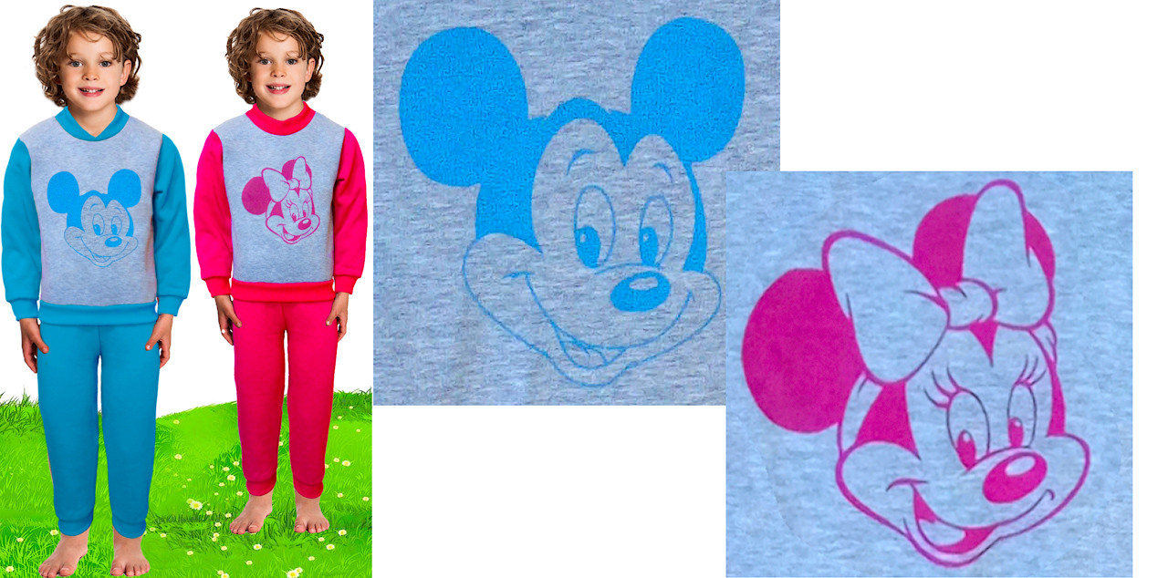 Опис: класична піжама, довгий рукав, довгі штанці. Рукави та штани на манжеті. На кофточку спереду мультяшна картинка (накатка, друк на тканині).